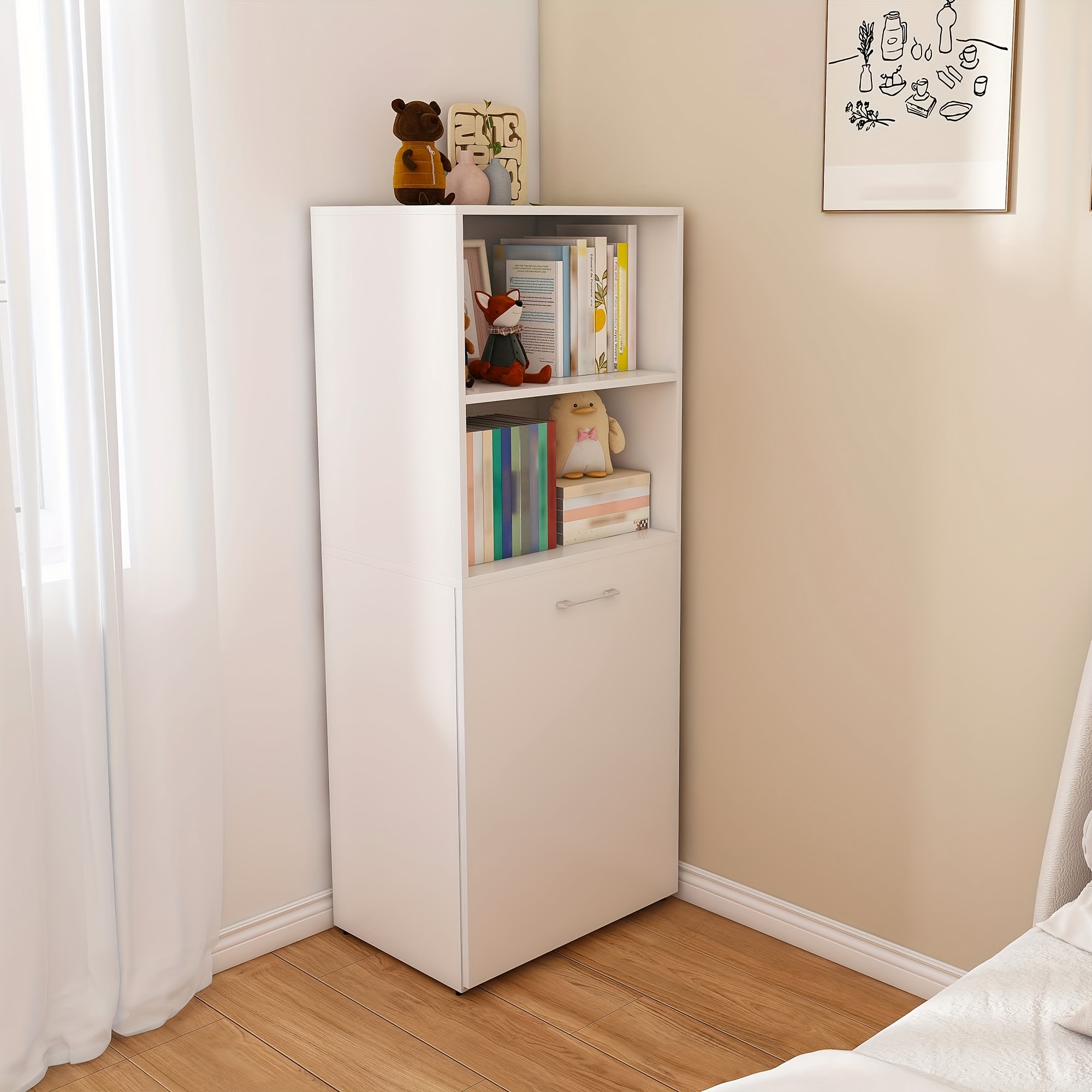3\u002F4 Layer Bookshelf Behind The Door, Wooden Bookshelf Behind The Door, Space-saving Storybook Storage And Organization Rack