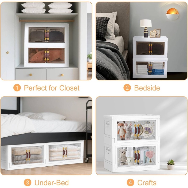 4pcs 140QT Stackable Plastic Storage Bins with Lids and Handles | Foldable Collapsible Closet Organizer with Magnetic and Side Locking, Ideal for Living Room, Office, Garages, Storage Boxes for Organizing