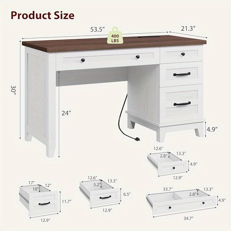 53. 5 Inch Desk with Drawers, Home Office Desk, Executive Desk with Filing Cabinet, Computer Desk for Work, Study, Writing, Suitable for Bedroom, Study, Home Office