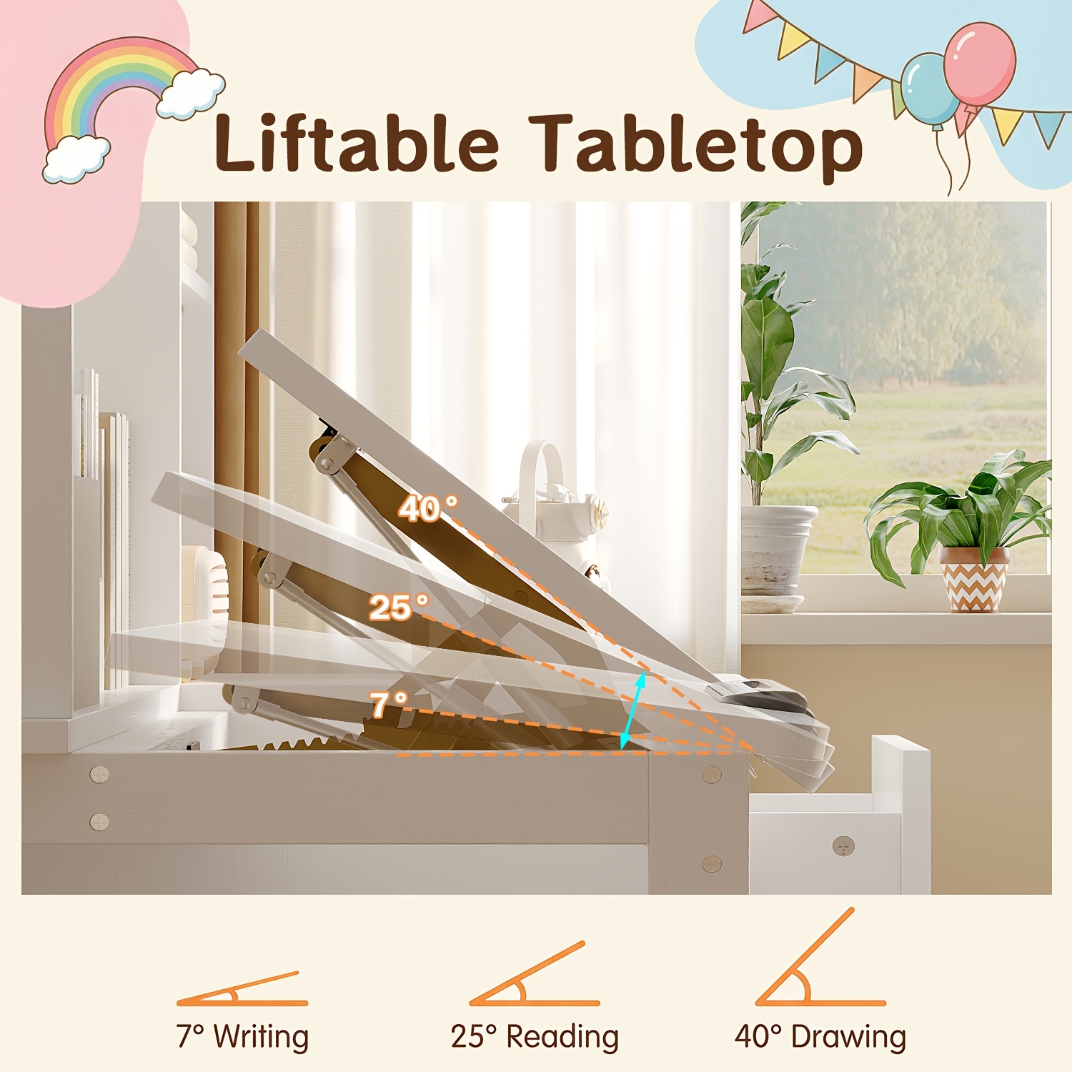 Contemporary Workstation Featuring Adjustable LED Lighting And a Flip-Top Surface, Includes a Drawer, Open Shelving, And a File Cabinet, Accompanied by a Stool, Designed with a Sleek And Minimalist Aesthetic in White