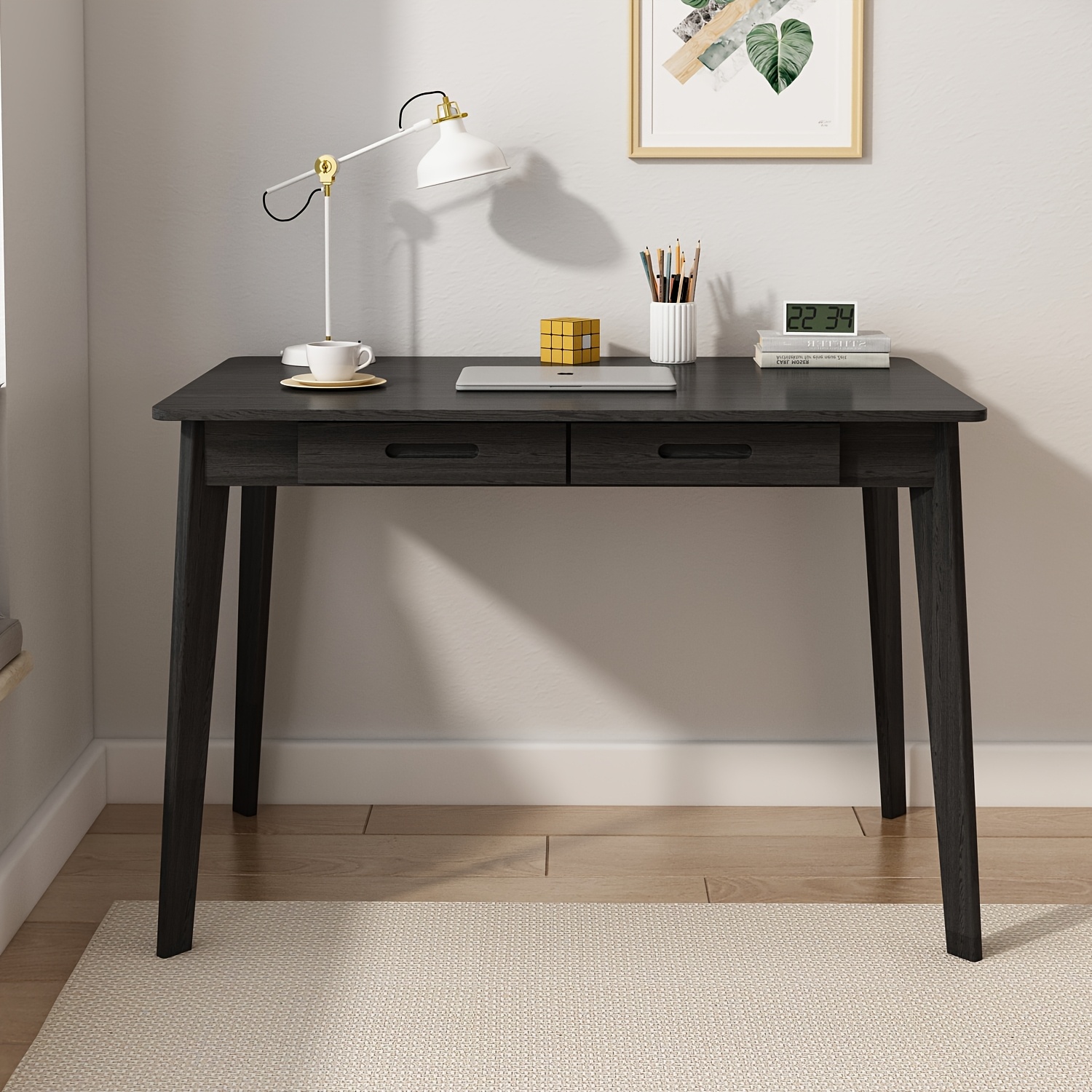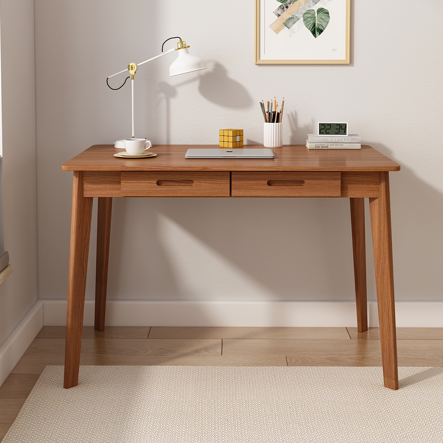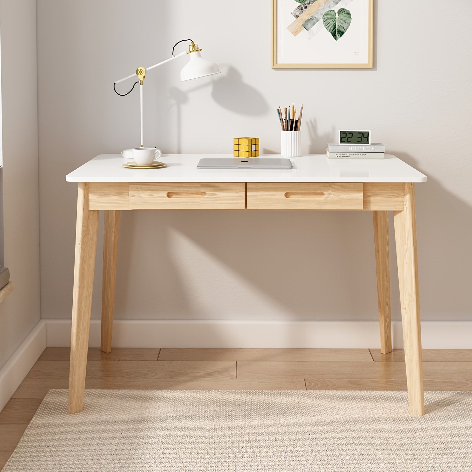 Modern Office Desk Computer Desk Writing Wood Desk Study Work Desk, With 2 Drawer, Suitable For Study Or Office, Equipped With Two Drawers And Four Legs, Easy To Assemble, Minimalist Design